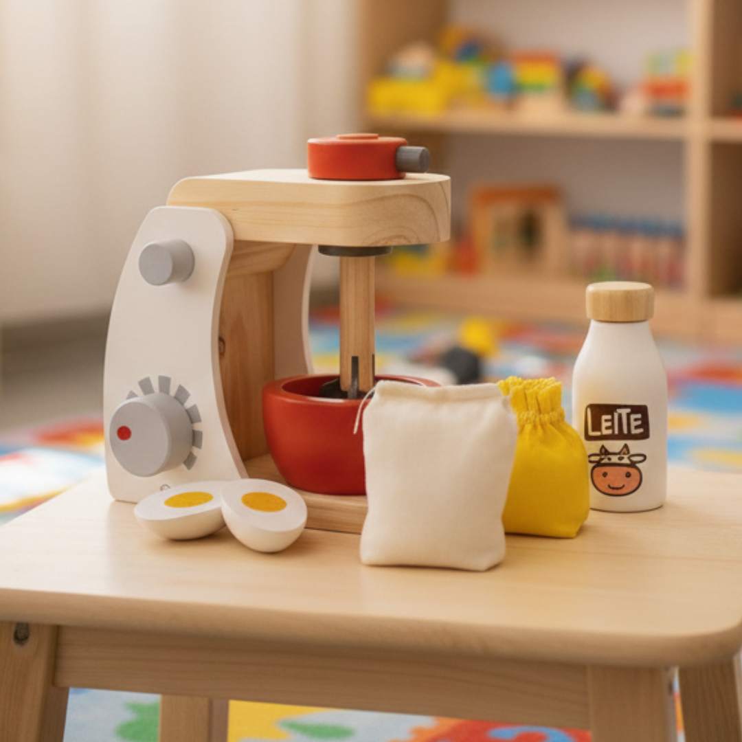 Qual criança não ama fazer um bolo com a mãe ou avó no final da tarde? Essa miniatura de batedeira e ingredientes para bolo, auxiliam a imaginação das crianças no mundo de faz de conta, permitindo que elas vivenciem situações do seu cotidiano de maneira lúdica e criativa. O botão de ajustar velocidade giram, trazendo mais realidade a brincadeira.